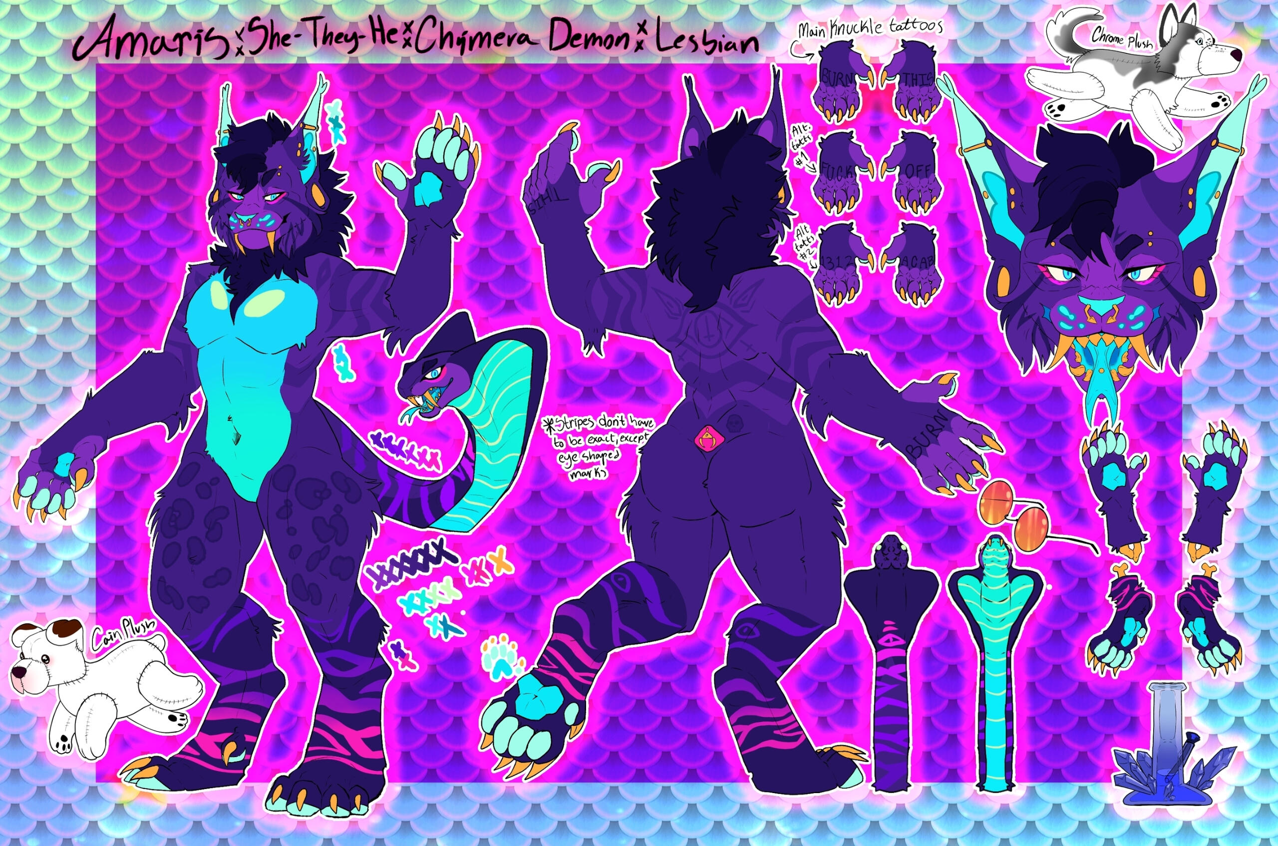 - You may get my work tattooed, if you do I would love to see!Design T.O.S.- You may edit/draw over the original ref sheet image, as long as the unedited remains uploaded! This does not apply to my regular commissios, just my design refs.